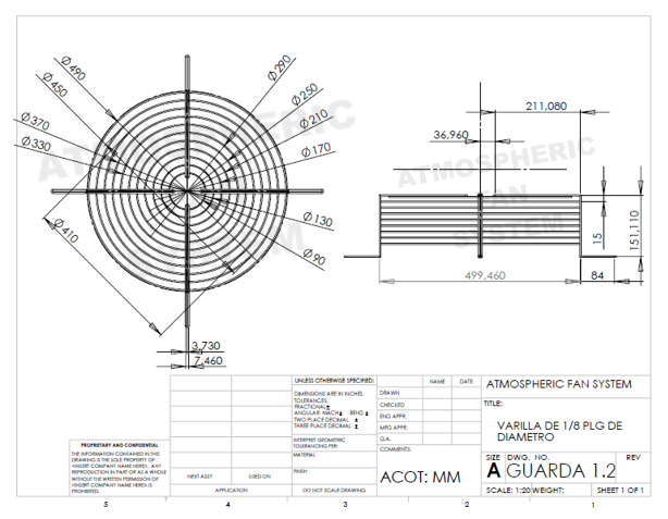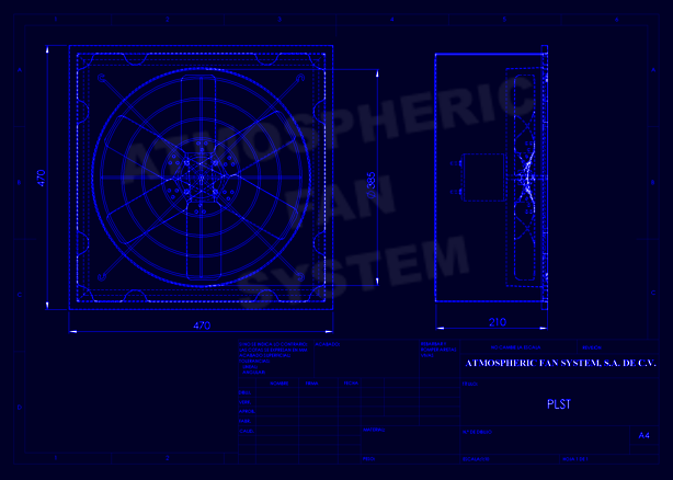 Aspa con 6 hojas fabricadas en lámina en fuerte calibre remachadas y centro de lámina con buje acerado.